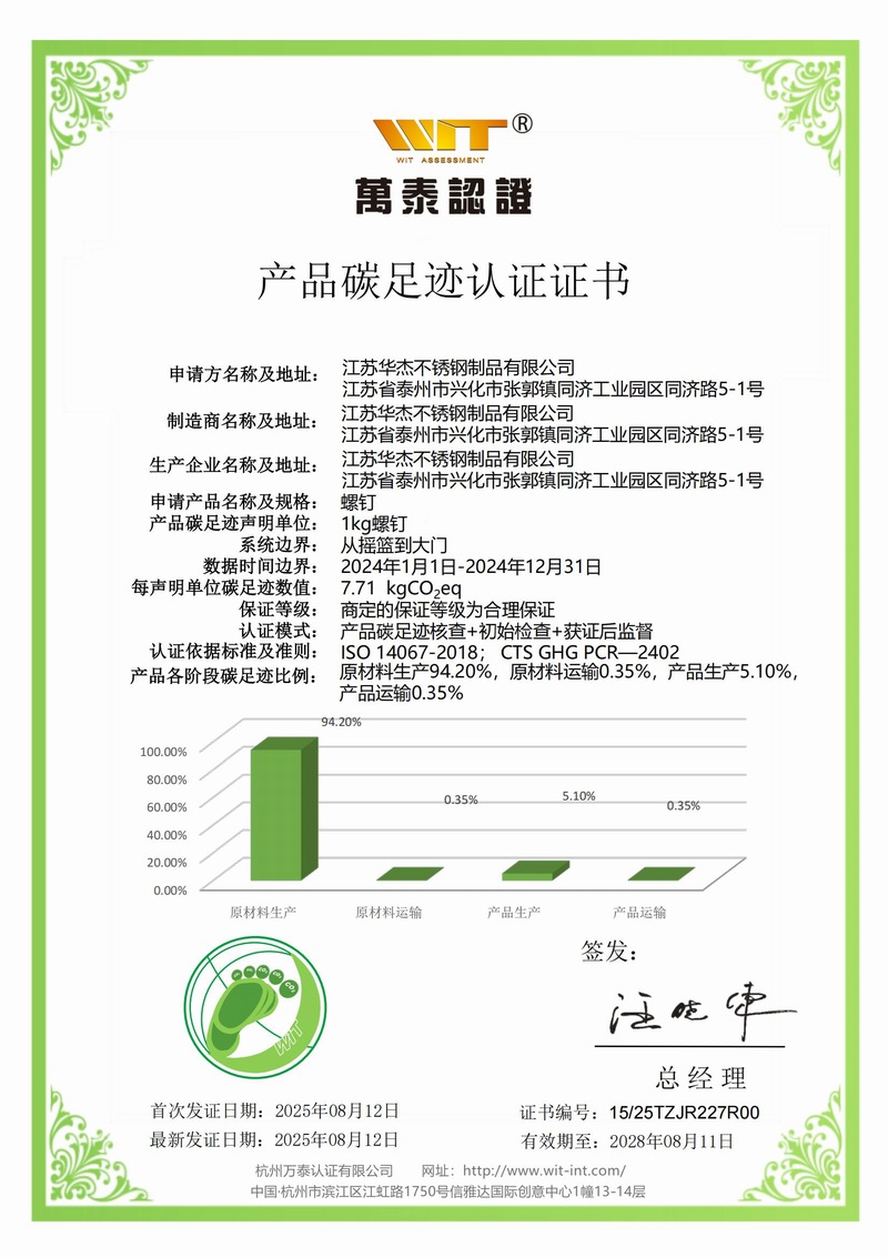 公司憑借嚴(yán)格的質(zhì)量管理,和諧的環(huán)境保障,贏得世界各地客戶的一致好評。公司先后與江蘇大學(xué)等多家高等院校、科研單位建立產(chǎn)學(xué)研聯(lián)合體,打造具有本公司特色的不銹鋼緊固件產(chǎn)品,產(chǎn)品質(zhì)量達(dá)到國內(nèi)外同行業(yè)先進(jìn)水平。公司擁有江蘇省企業(yè)技術(shù)中心,泰州市工程技術(shù)研究中心,獲得了江蘇省新技術(shù)新產(chǎn)品認(rèn)定。公司榮獲國家高新技術(shù)企業(yè)、國家專精特新小巨人企業(yè)、江蘇省專精特新中小企業(yè)、江蘇省民營科技企業(yè)等稱號。